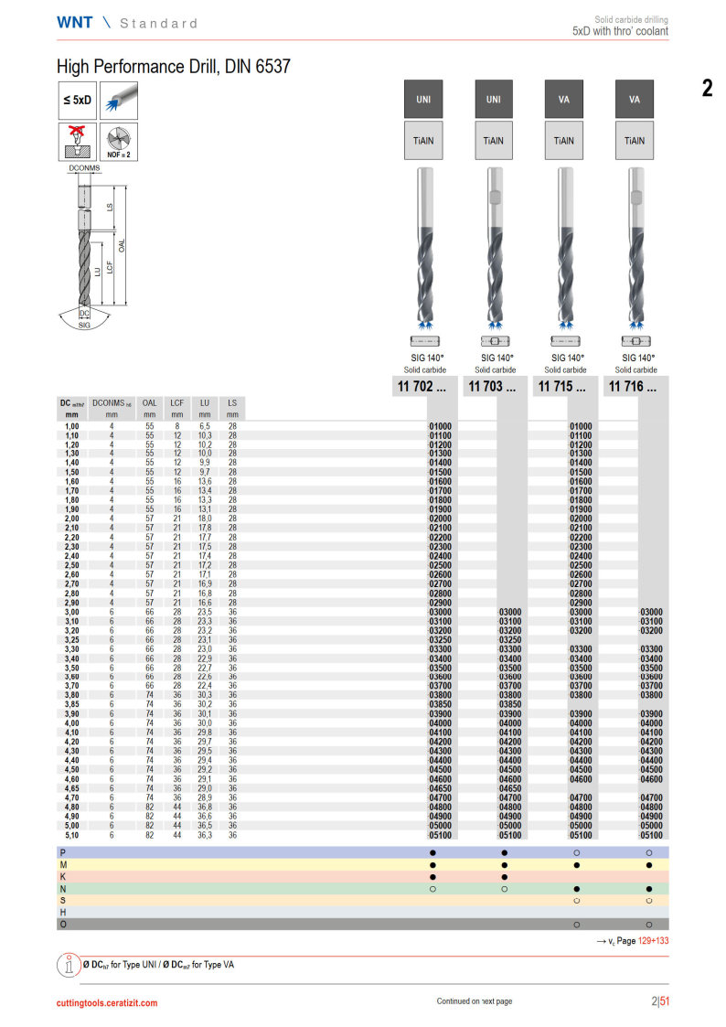 WPC – High Performance Drill, DIN 6537. 5XD - Thru-Coolant. Suitable for most materials P,M,K,N