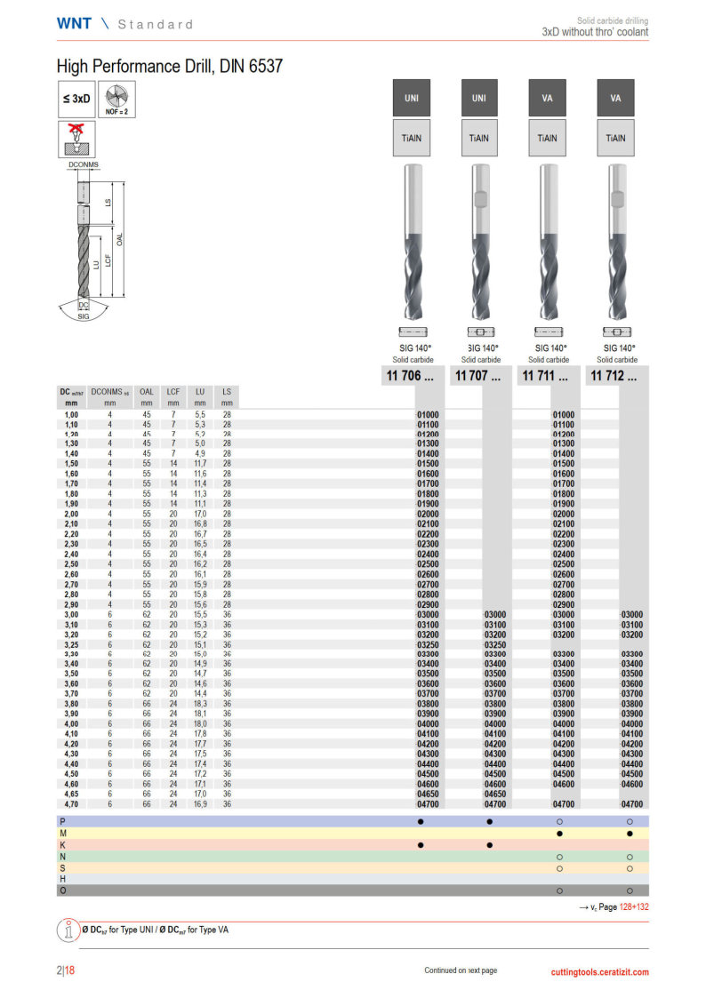 WPC – High Performance Carbide Drill, DIN 6537. 3XD - Non-Thru-Coolant. Suitable for most materials P,M,N,S,O