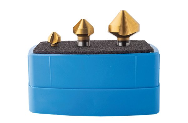 TiN coated 3 flute HSS Countersink Set 90° with differential pitching to reduce harmonics and improve surface quality in machine and hand held operations